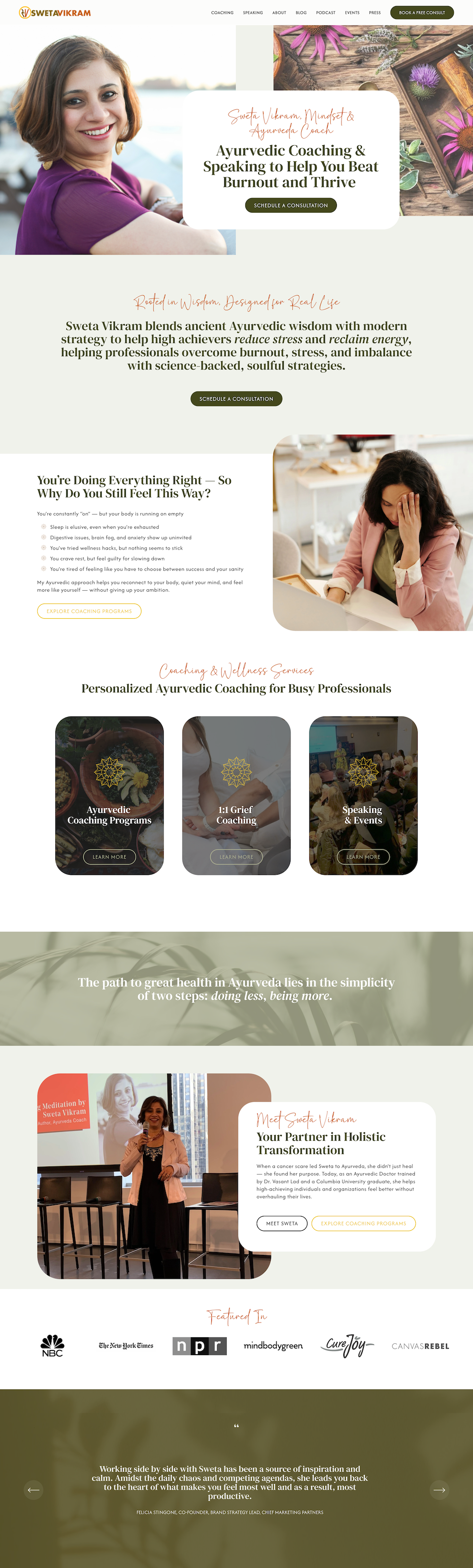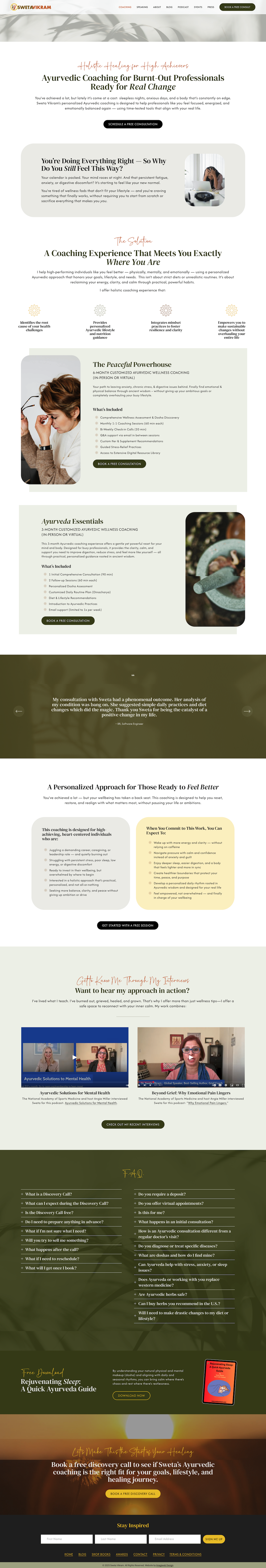 A complete brand + website transformation for Sweta Vikram, turning an outdated site into a modern, high-converting digital home that reflects her expertise, authority, and lived experience in Ayurveda and mind-body wellness.